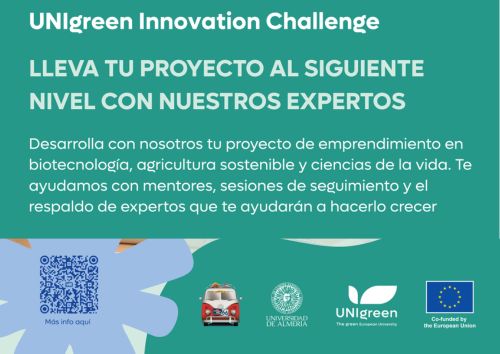 Desarrolla tu proyecto en biotecnologia, agricultura sostenible yciencias de la vida. Podrás acceder a mentores, sesiones de segumiento y al respaldo de expertos que te ayudarán a desarrollar tu proyecto. Debes participar en la Feria de las Ideas e inscribirte en el reto Unigreen Innovation Challenge antes del 22 de abril.
